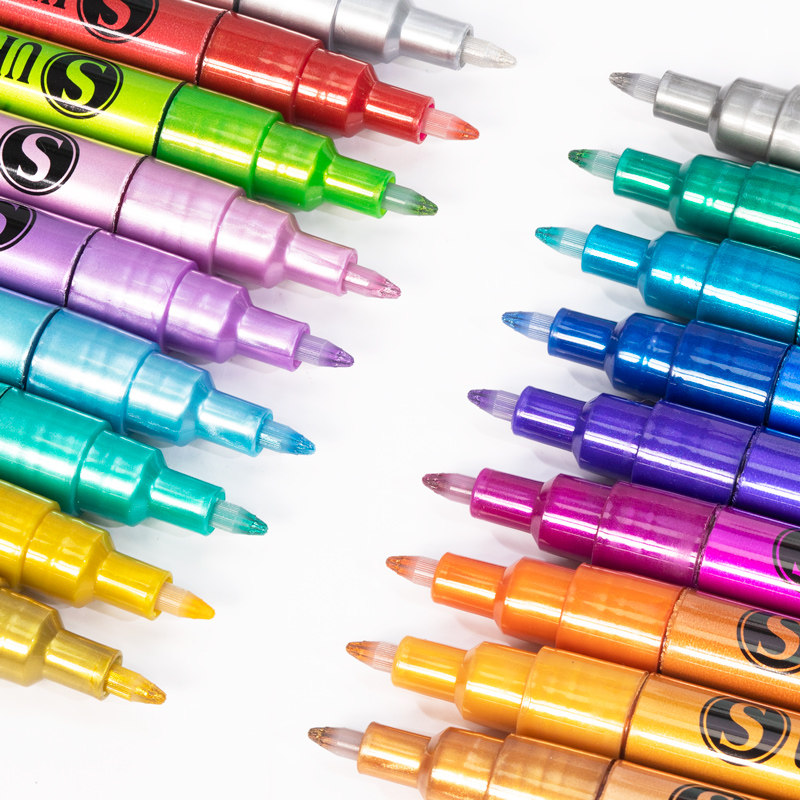 广纳超级金属色丙烯马克笔18色细头高达模型手办上色笔防水机甲大班笔涂补色玻璃水笔勾线笔diy黑卡纸相册