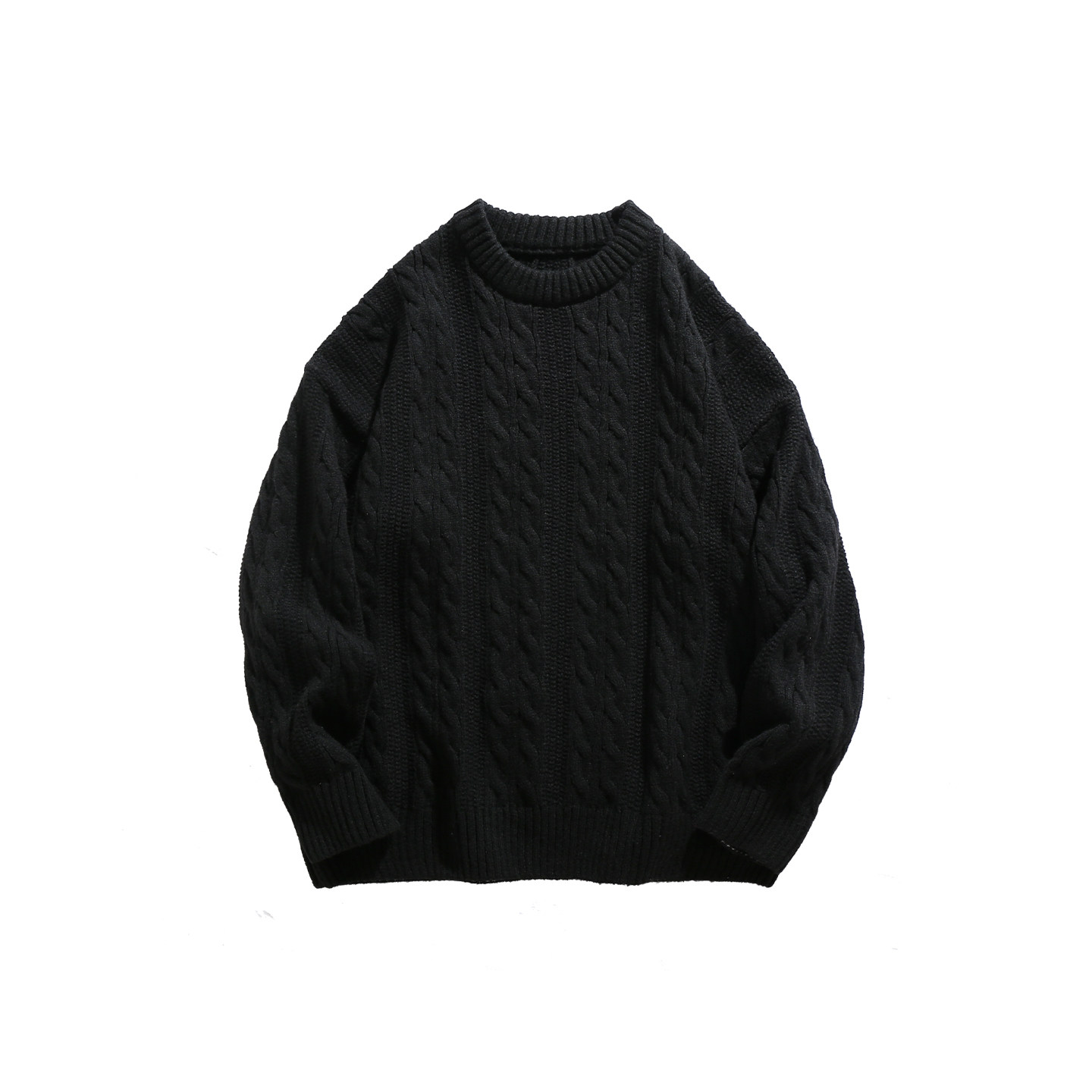 OFF-UP 绞花纹设计圆领针织毛衣秋冬百搭宽松针织套衫上衣慵懒