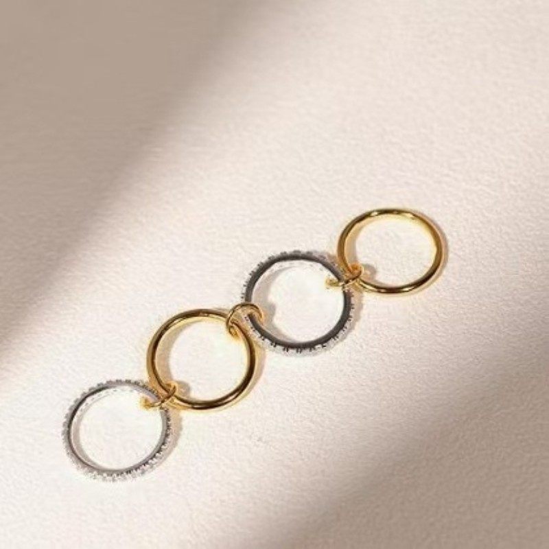亚马逊新品堆叠立方氧化锆戒指18k金钛钢厚实高光泽金银双拼戒指