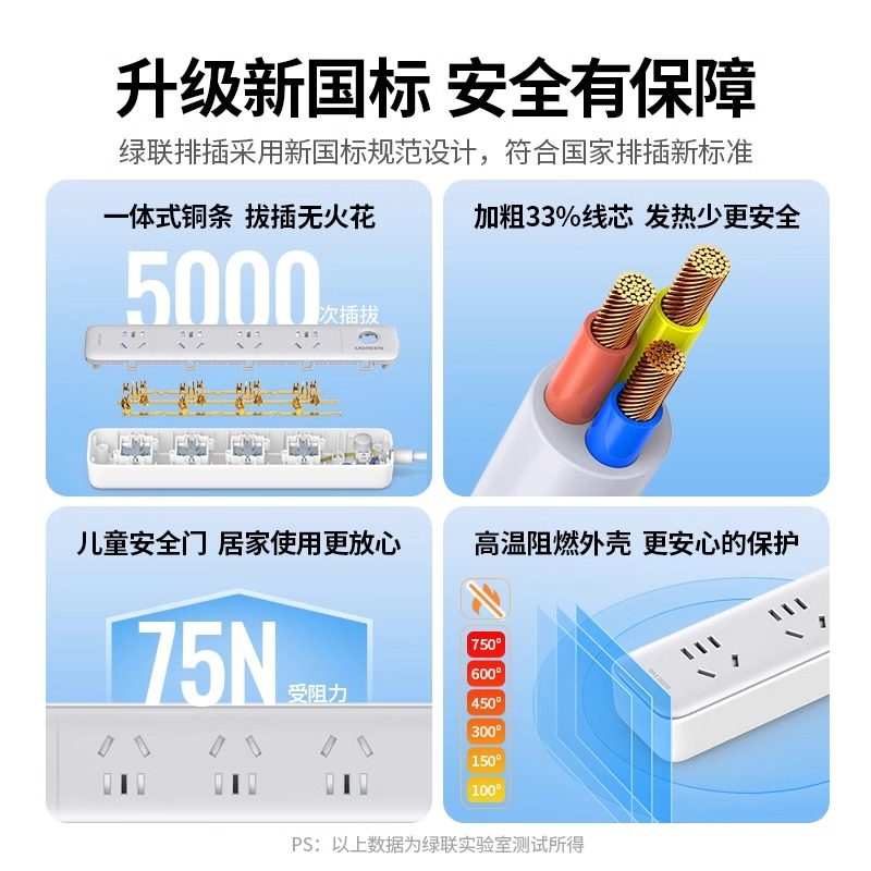 绿联插座插排插接线板拖面板多孔转换器扩展宿舍usb功能分控电源