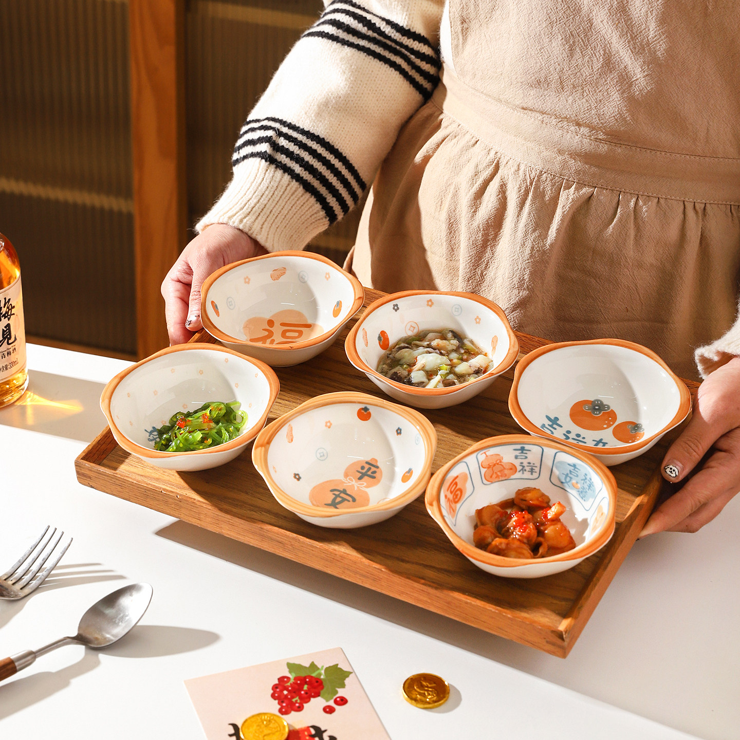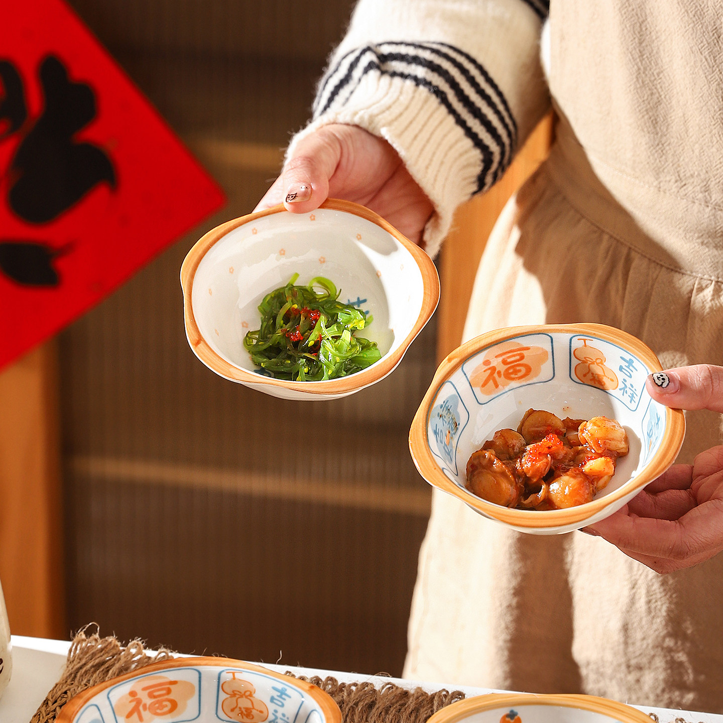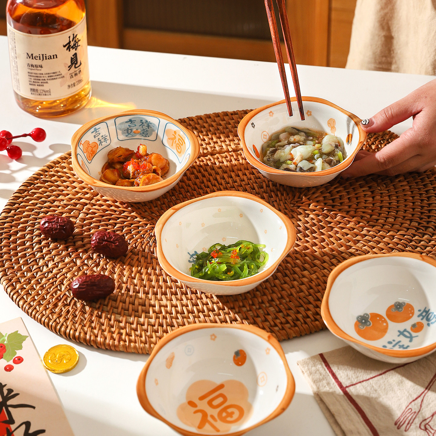 舍里中式福字蘸料碟家用创意陶瓷小菜碟酱油碟醋碟火锅烤肉调味碟