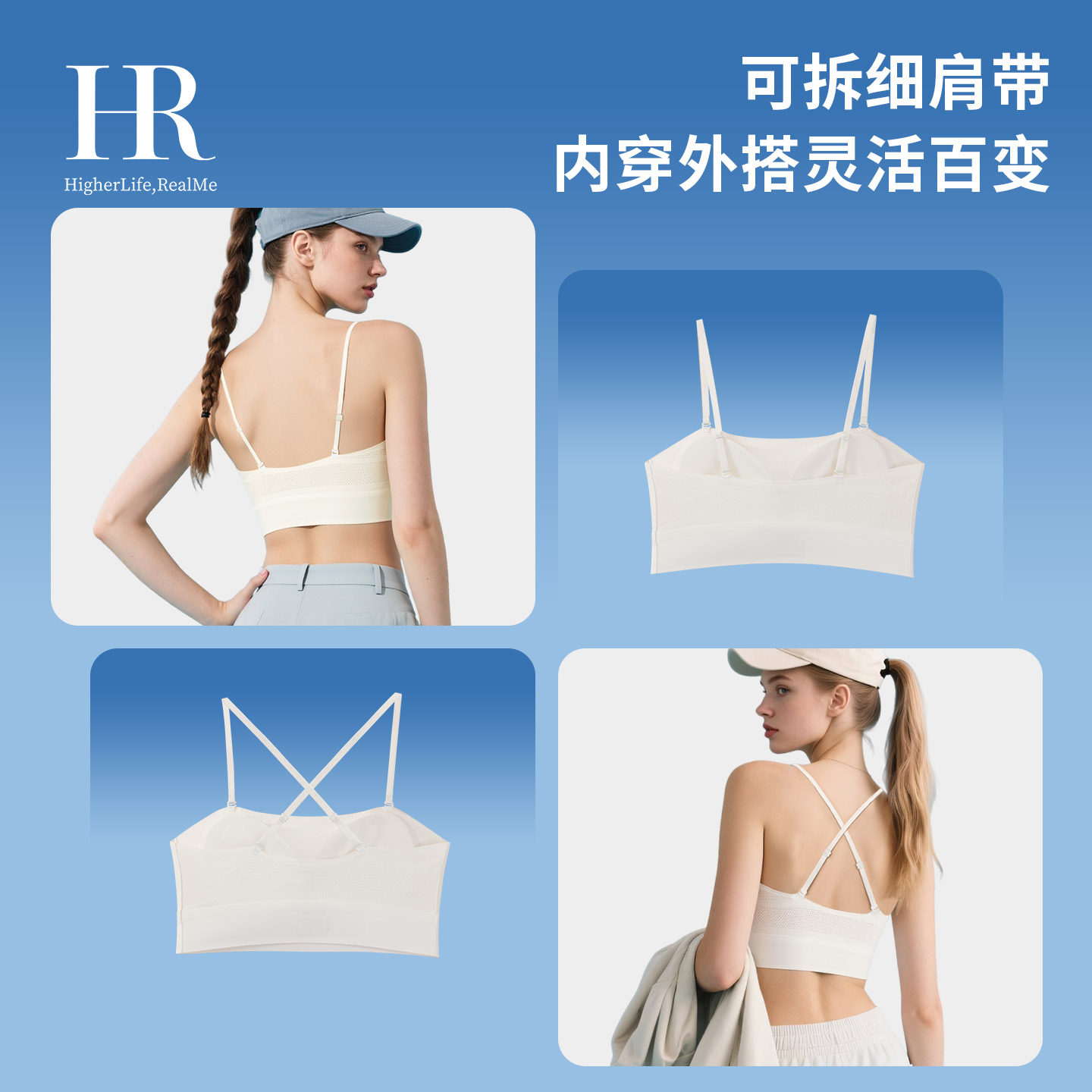 HR赫莲娜细肩带美背内衣小胸轻薄透气抹胸