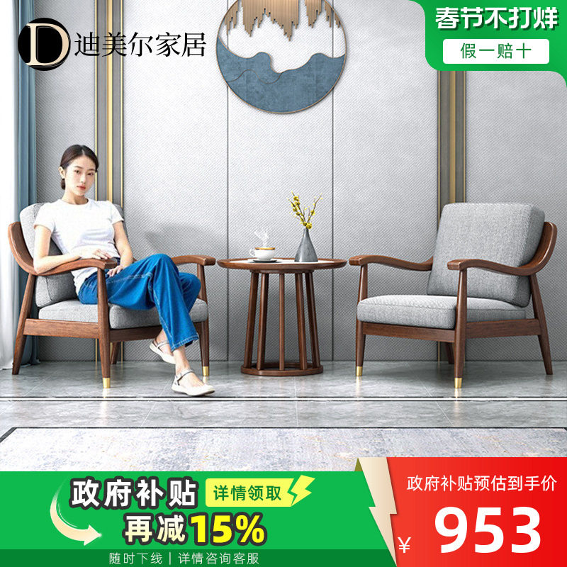 实木小型单人沙发椅子客厅靠背休闲单椅阳台椅茶几组合卧室小户型