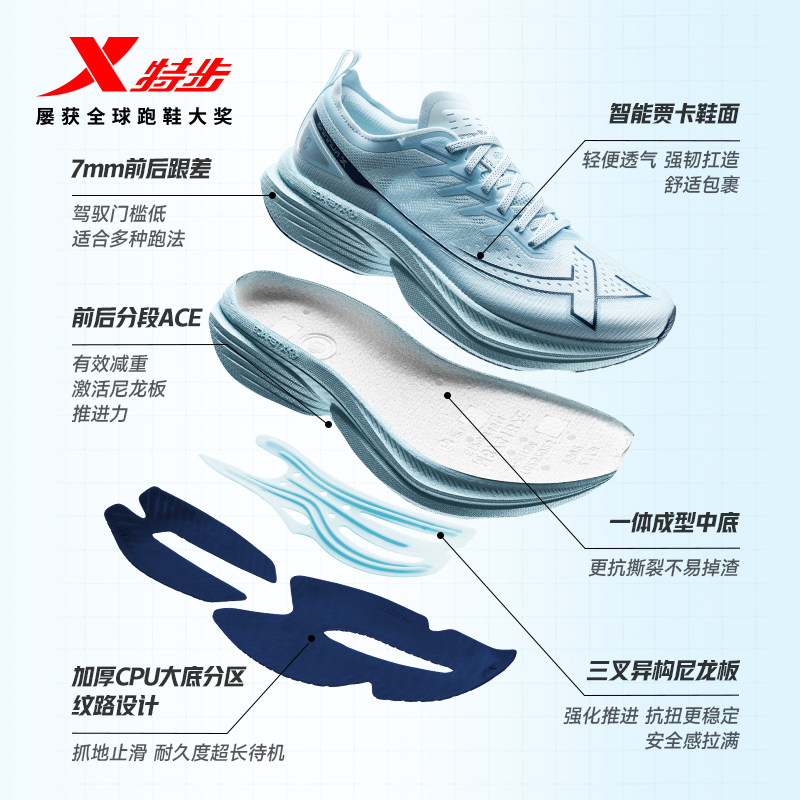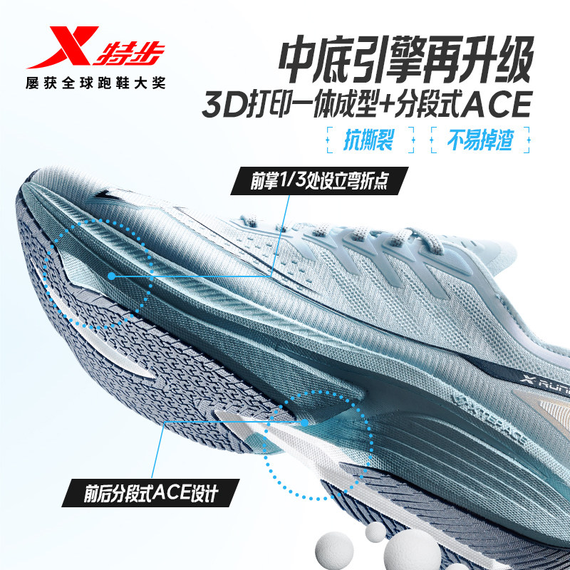 特步一体成型三代丨跑鞋男专业竞训减震支撑跑步鞋体考体测运动