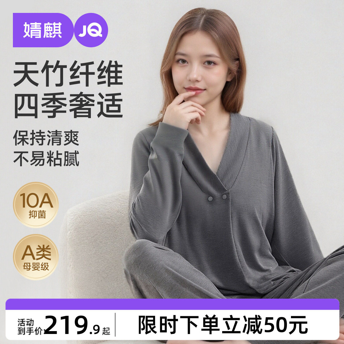 婧麒竹纤维月子服孕妇冬产后哺乳睡衣喂奶待产妇怀孕期家居服套装