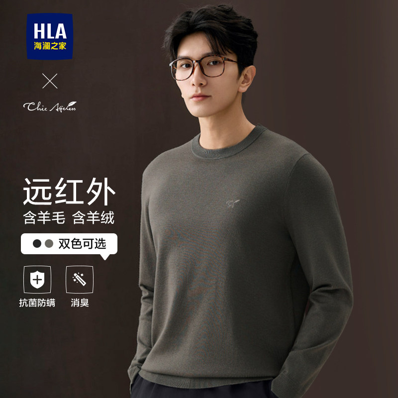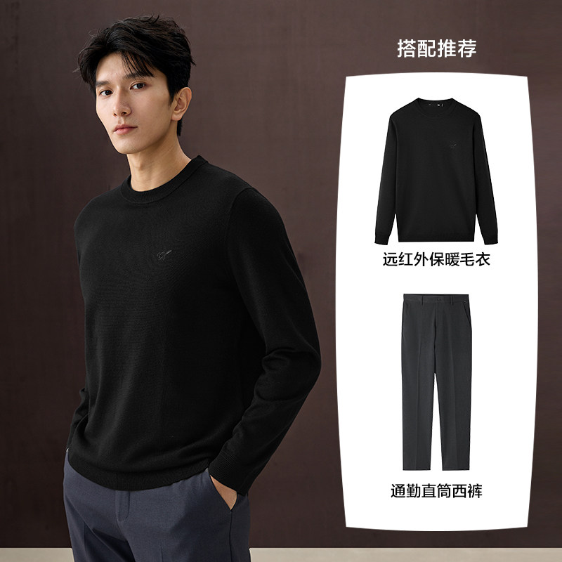 海澜之家轻商务Chic Ageless含羊毛羊绒针织衫25秋冬新黑色毛衣男