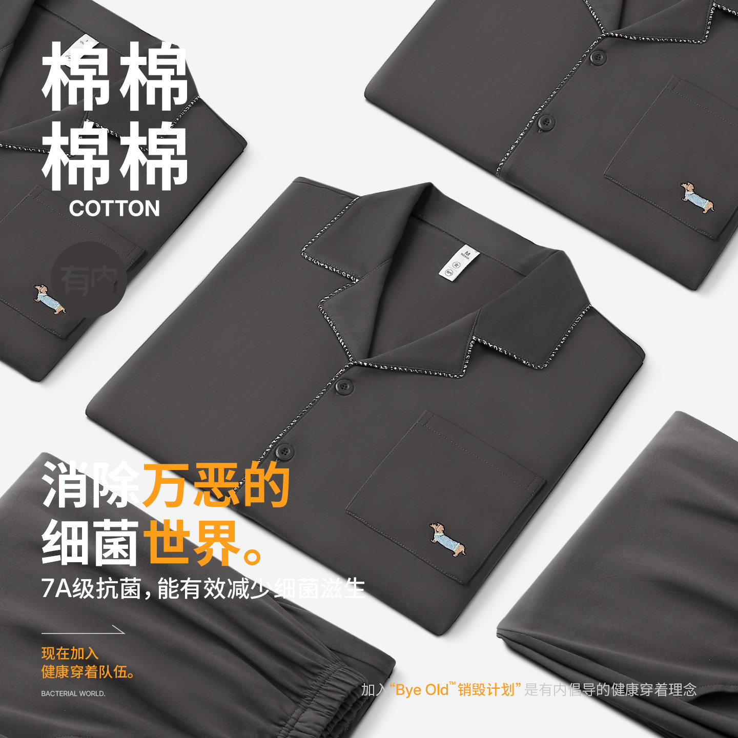 有内纯棉睡衣女款2026新款长袖防螨抗菌家居服情侣男女套装