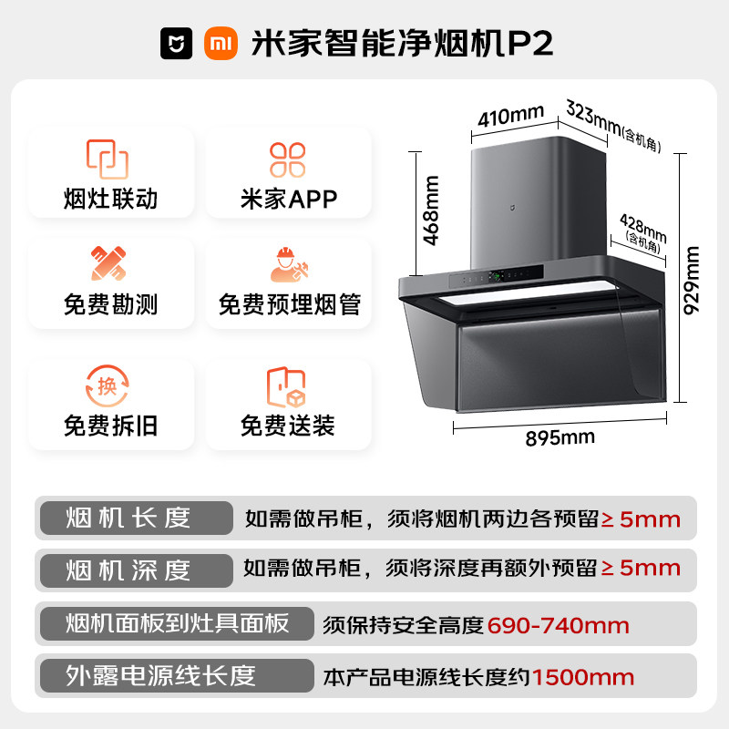 小米米家智能净烟机P2顶吸家用厨房抽油烟机大吸力官方旗舰05
