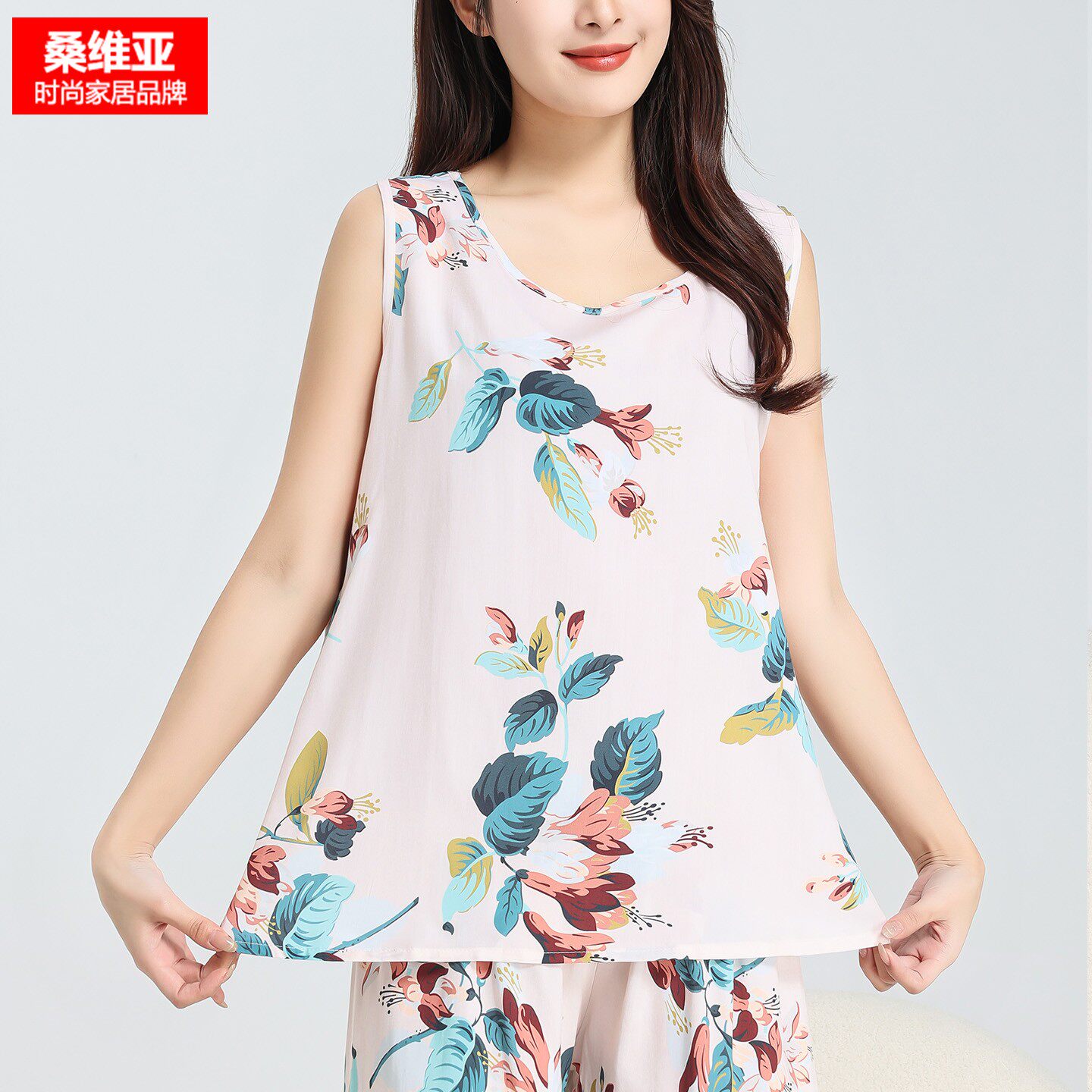 桑维亚棉绸睡衣女夏款短袖短裤凉感透气薄款宽松可外穿家居服