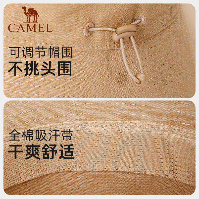 骆驼户外2025春夏新款纯棉渔夫帽女防晒遮阳盆帽男防紫外线钓鱼帽