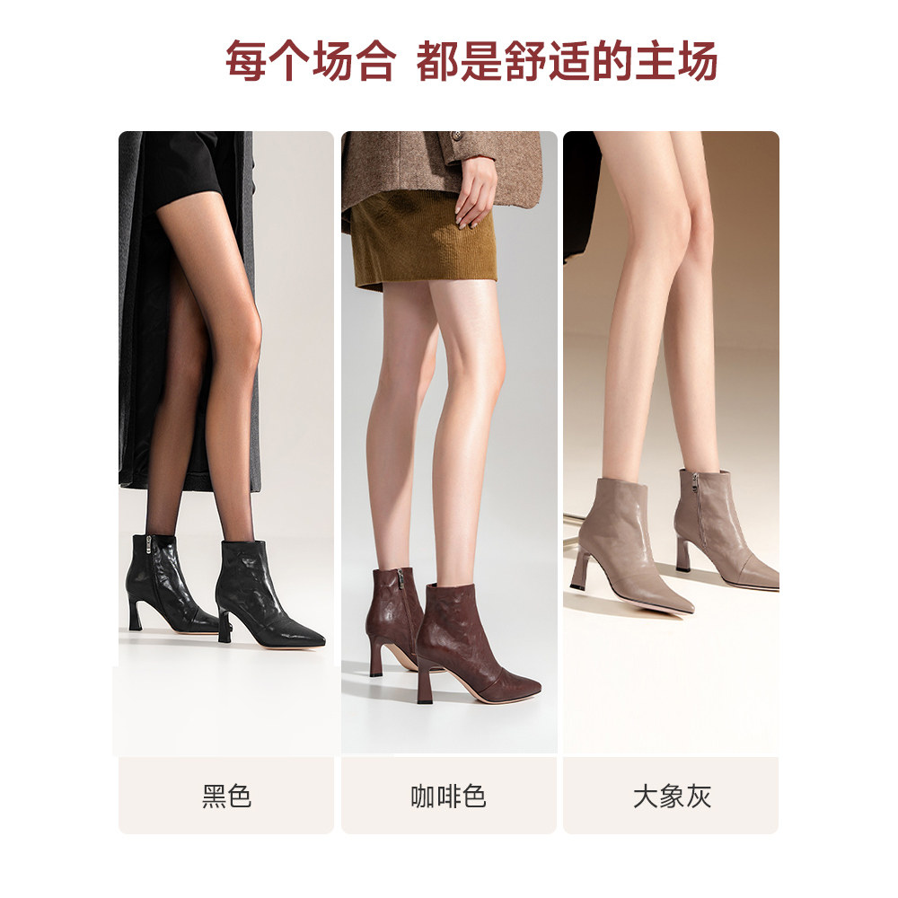 尖头高跟短靴女细跟拉链黑色靴子气质秋冬皮靴百搭2025新款瘦瘦靴