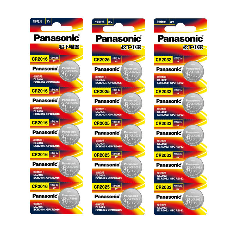 松下纽扣电池5粒CR2032/CR2025/CR2016电子3V适用摩托汽车钥匙遥控器CR1620/CR1220/CR1616/CR1632/CR2450