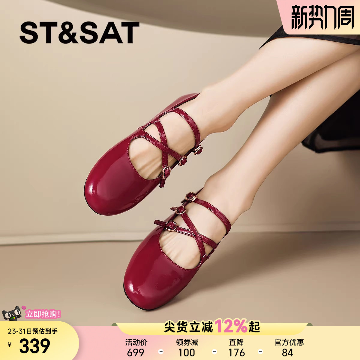 星期六红色单鞋女2026春季新款法式平底鞋子女皮鞋芭蕾玛丽珍女鞋