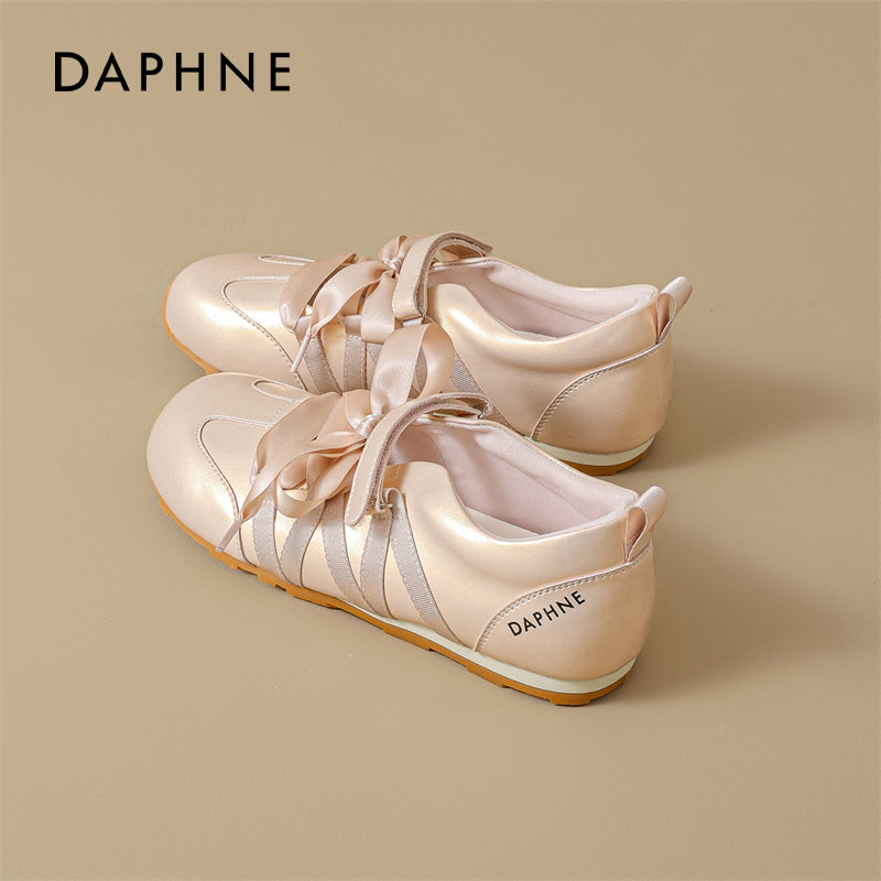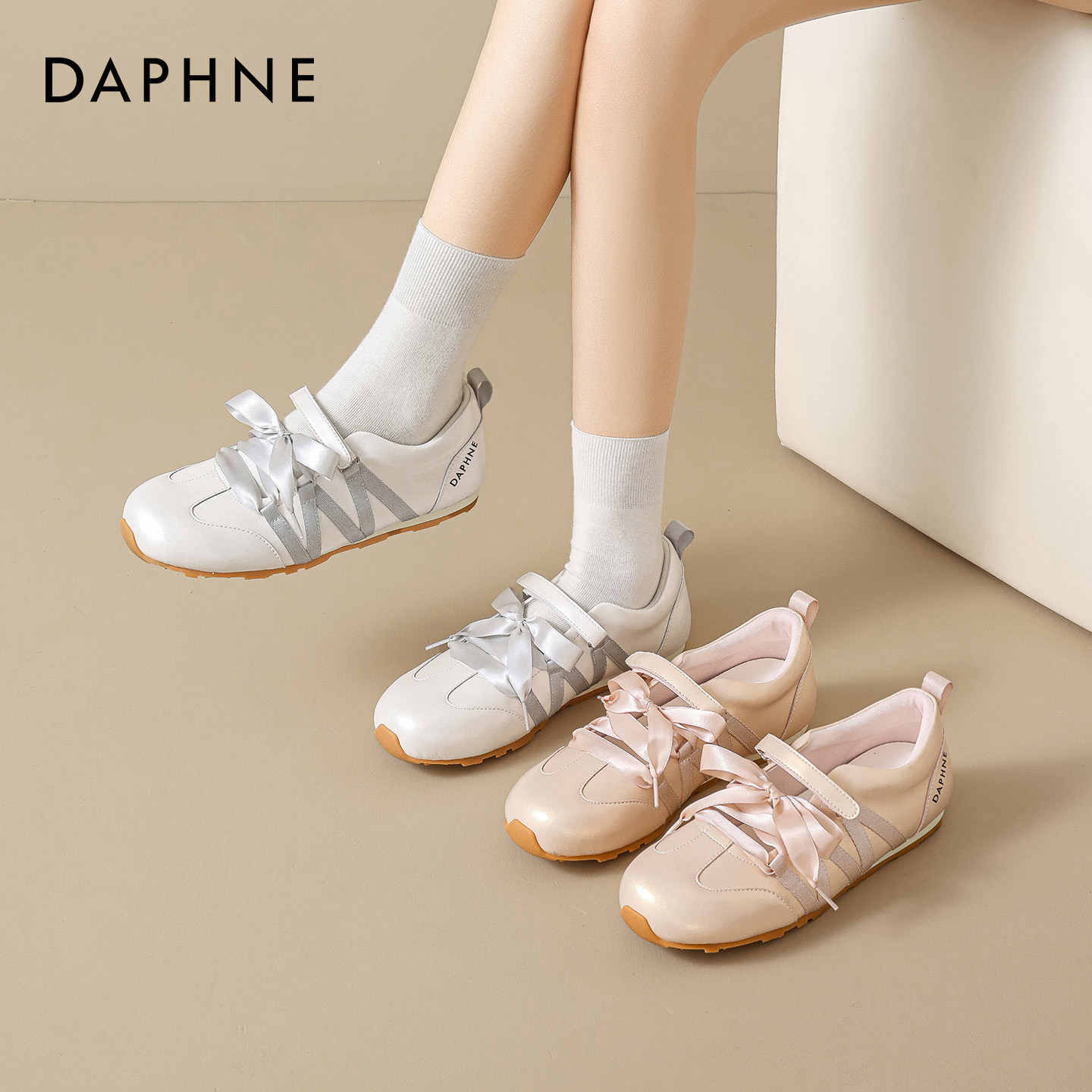 达芙妮厚底芭蕾德训鞋女2026春季新款蝴蝶结平底粉色运动玛丽珍鞋