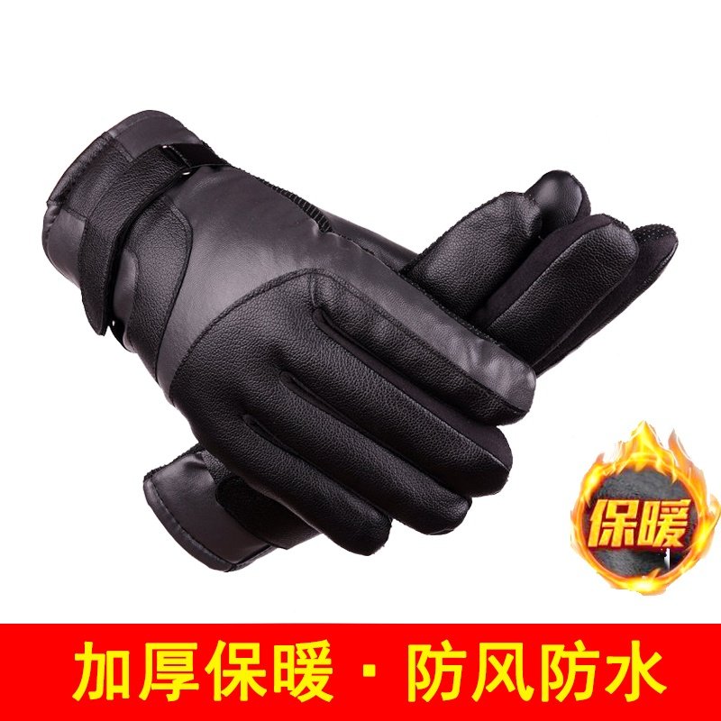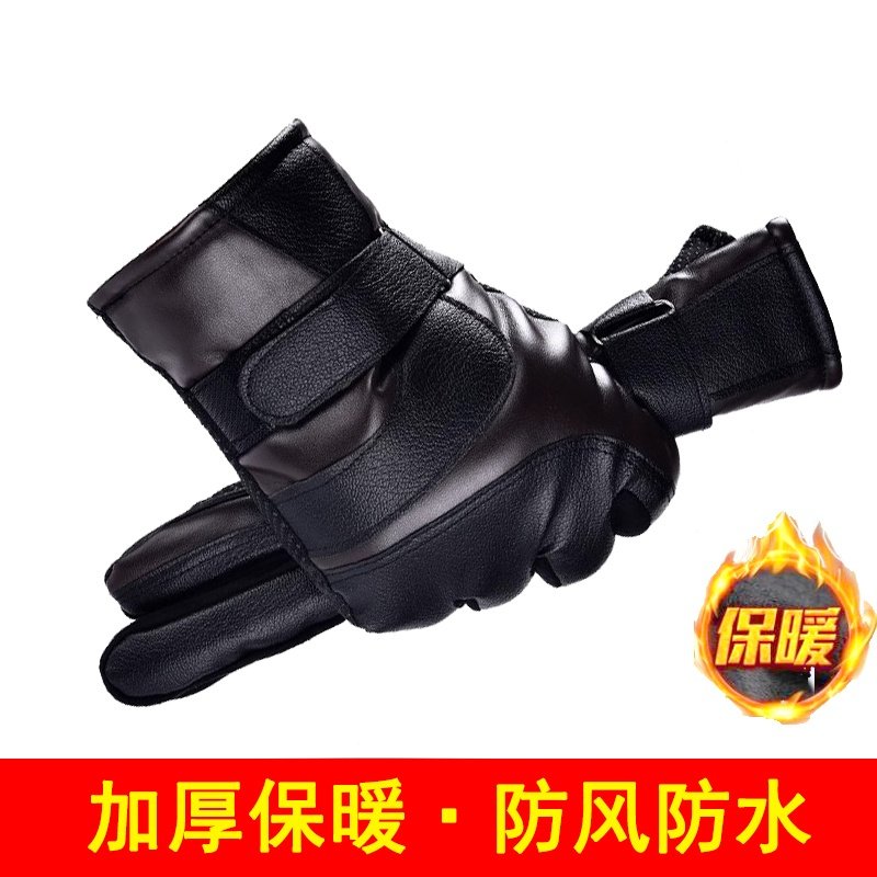 皮手套男冬季骑行加绒加厚防水保暖触屏电动摩托车女士皮防风骑车