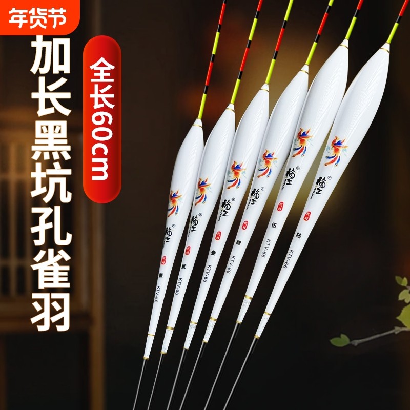 60cm加长黑坑孔雀羽浮漂轻口鲫鱼底钓鲫鲤速钓快钓混养正品羽毛漂