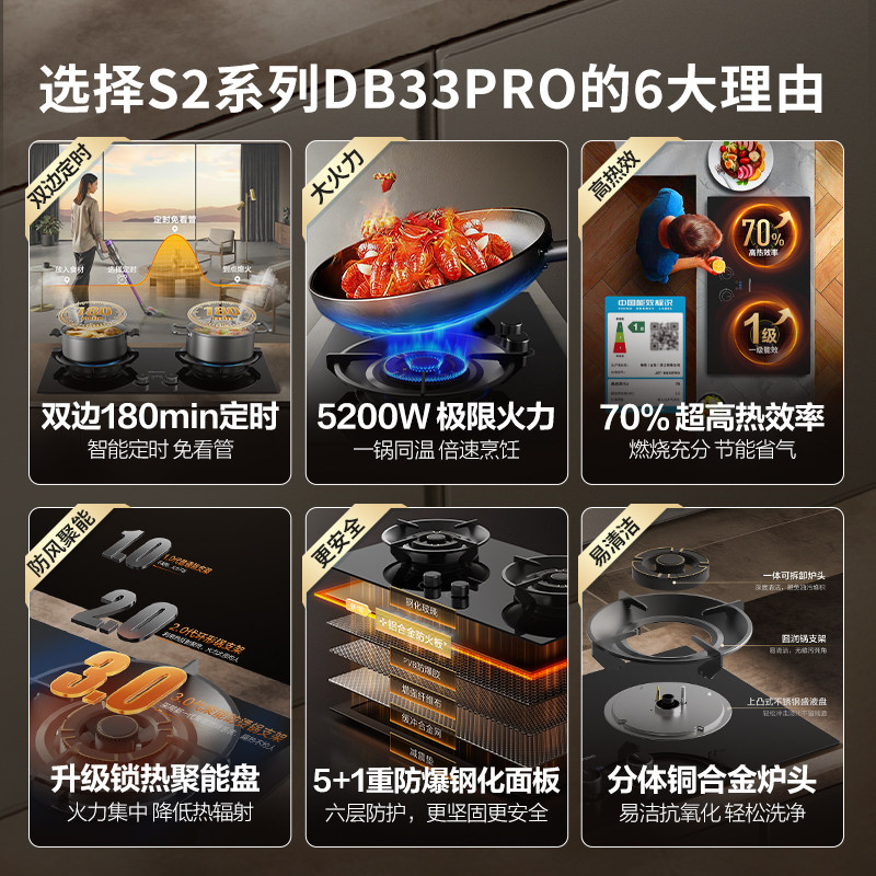 聚能猛火 70%热效率 6重安全防护