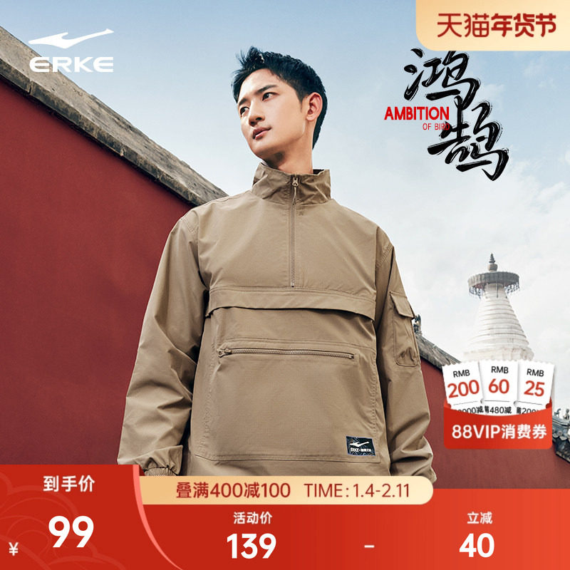 鸿鹄丨鸿星尔克风衣外套男冬季男士休闲宽松半开襟梭织运动上衣男