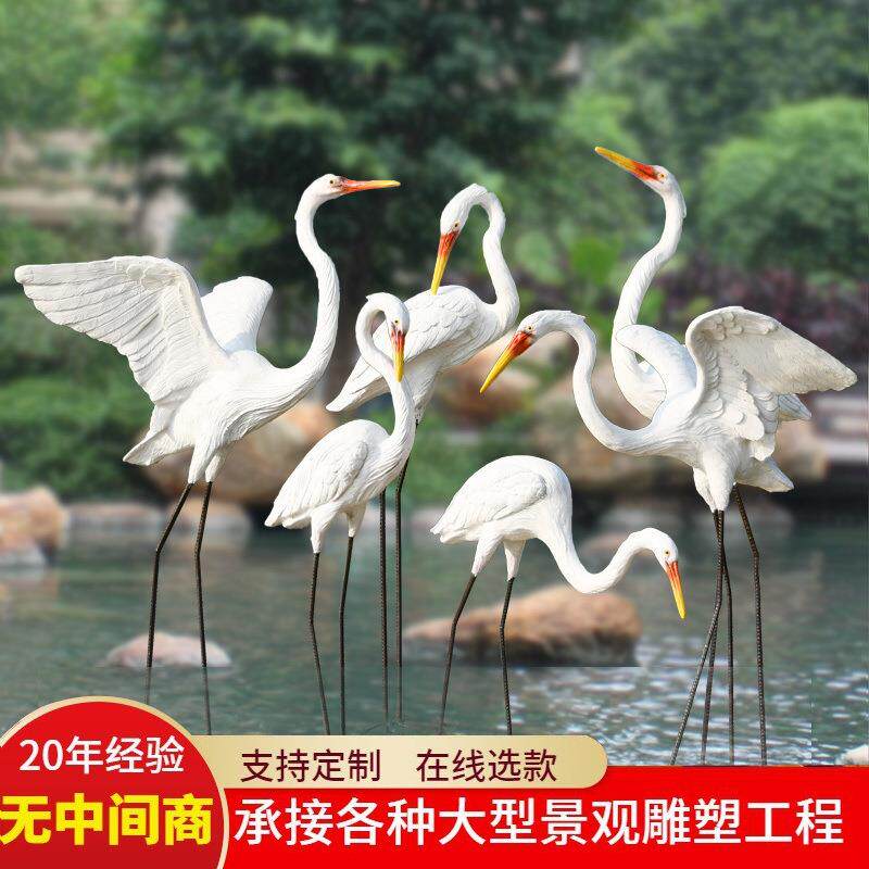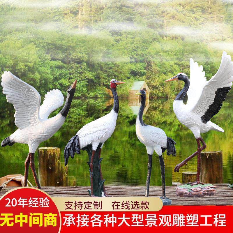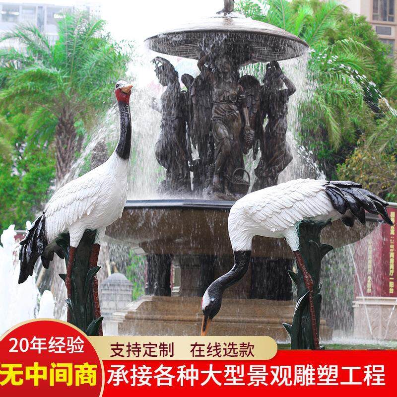 户外园林铸铜仙鹤摆件丹顶鹤雕塑花园庭院假山水池造景景观装饰品