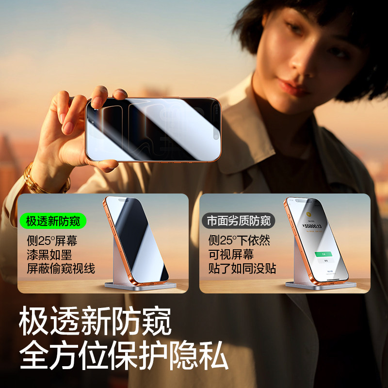 倍思无色防窥膜适用苹果iPhone17ProMax钢化膜16Pro无尘仓ip15手机贴膜AR抗反射360°防偷窥14防摔Air保护13
