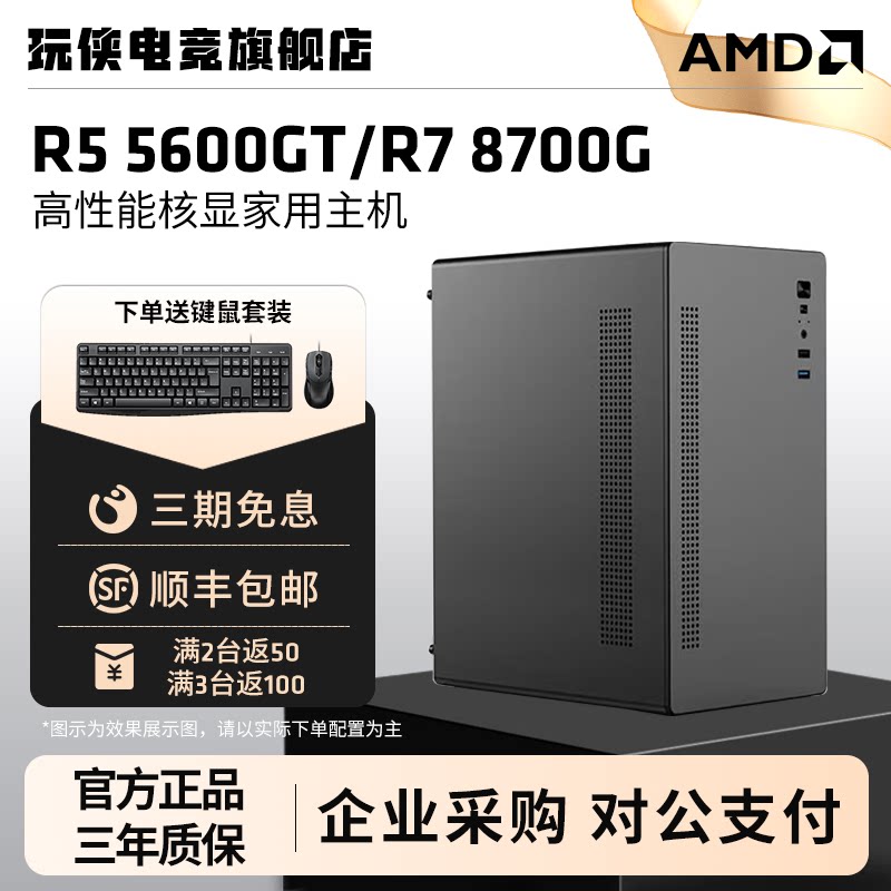 AMD锐龙 5600GT/5700G/8600G/8700G高性能核显办公家用炒股财务便携台式机AI主机设计直播全套DIY整机电脑