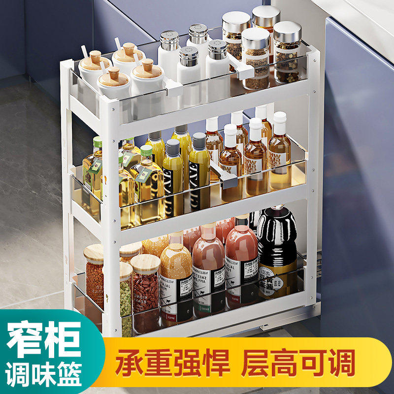 调味篮调料拉篮厨房橱柜极窄柜抽屉式小尺寸柜内抽拉式收纳