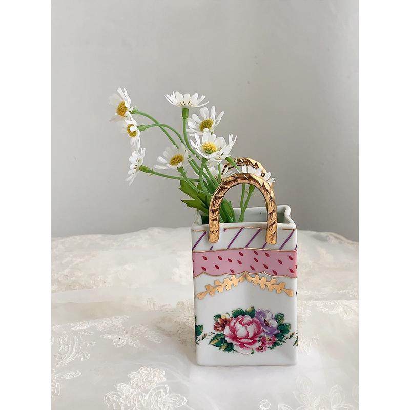 7yx美复古宫廷风花卉小提包造型描金桌面叉花篮收纳小勺