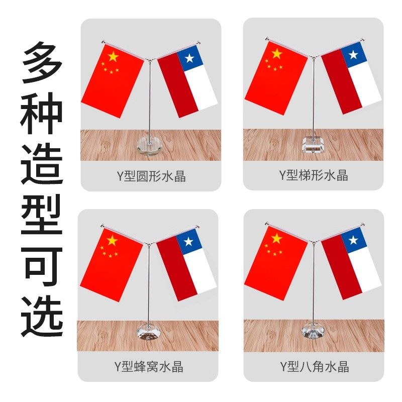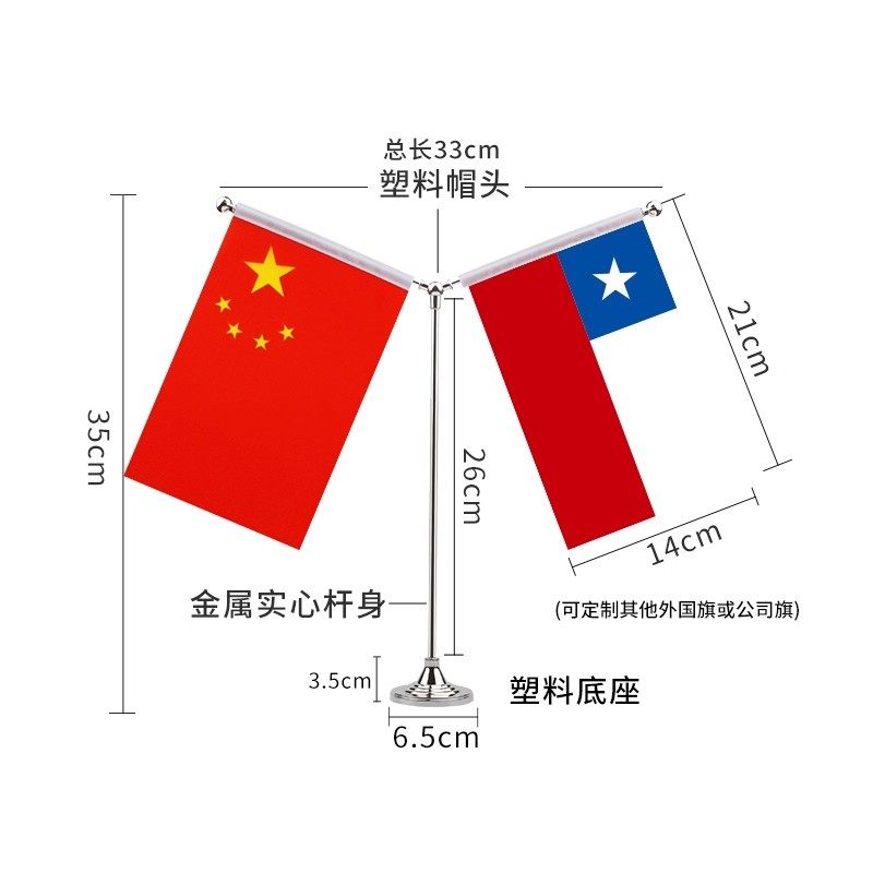 中国智利桌旗国旗摆件谈判签字签约旗小红台装饰办公室面双杆Y型