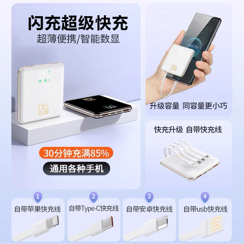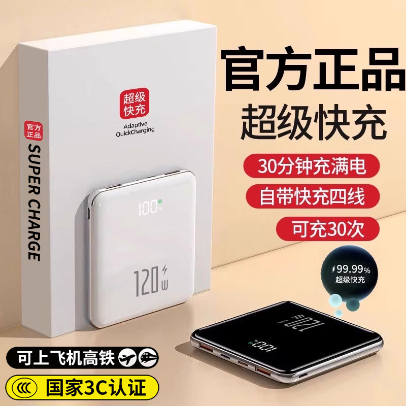 充电宝新国标3C认证2025新款超级快充大容量20000毫安超薄小巧便携自带线官方正品适用华为苹果专用可上飞机
