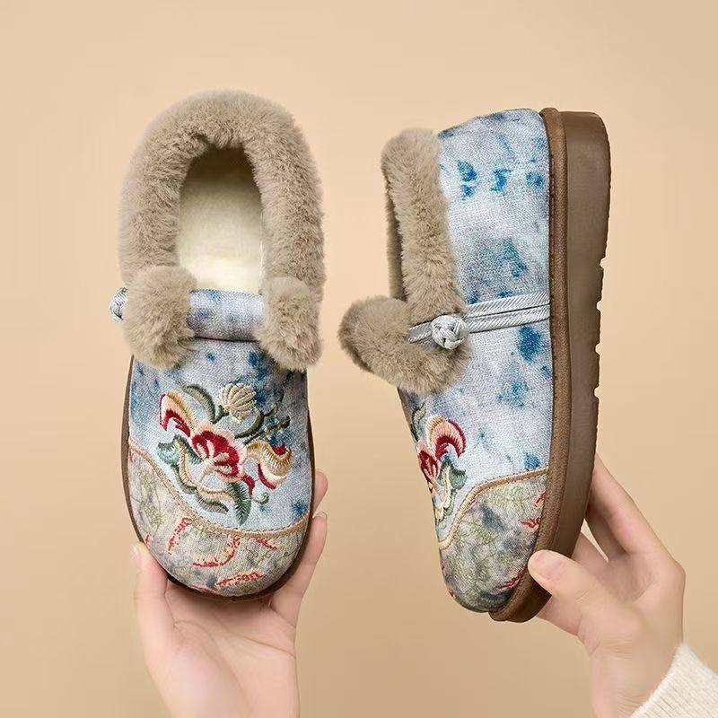 冬加绒原创非遗虎头鞋女新中式手工绣花鞋软底保暖平底民族风棉鞋
