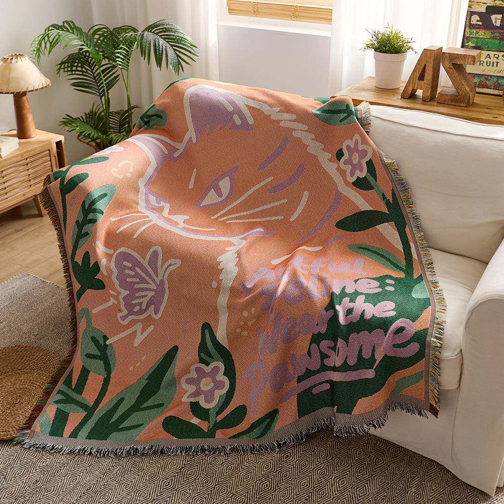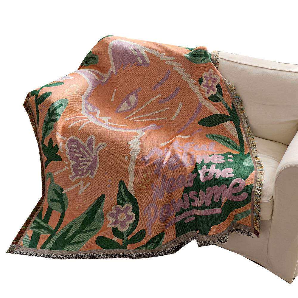 棉纱线毯沙发巾办公室午睡盖毯汽车旅行露营毯野餐垫民宿装饰挂毯