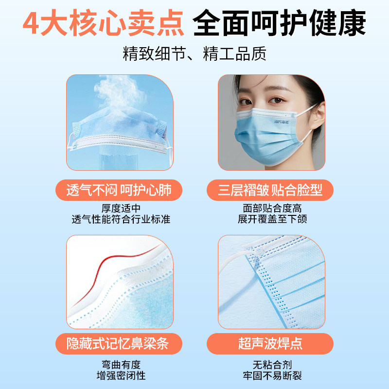 100只医用外科口罩一次性医疗三层官方正品旗舰店灭菌级独立包装