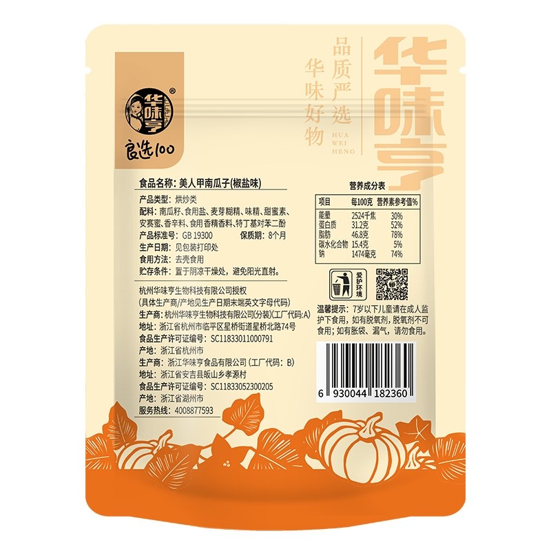 华味亨新疆美人甲南瓜子椒盐长粒熟原味坚果炒货新货大颗粒老字号
