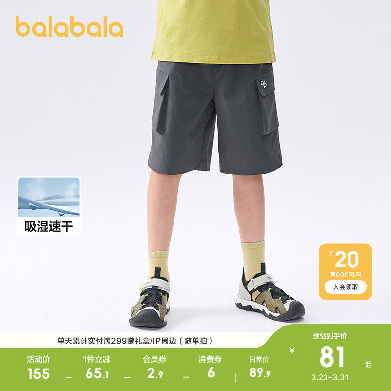 巴拉巴拉童装儿童短裤男童2026夏季女童大童裤子速干工装裤中裤潮