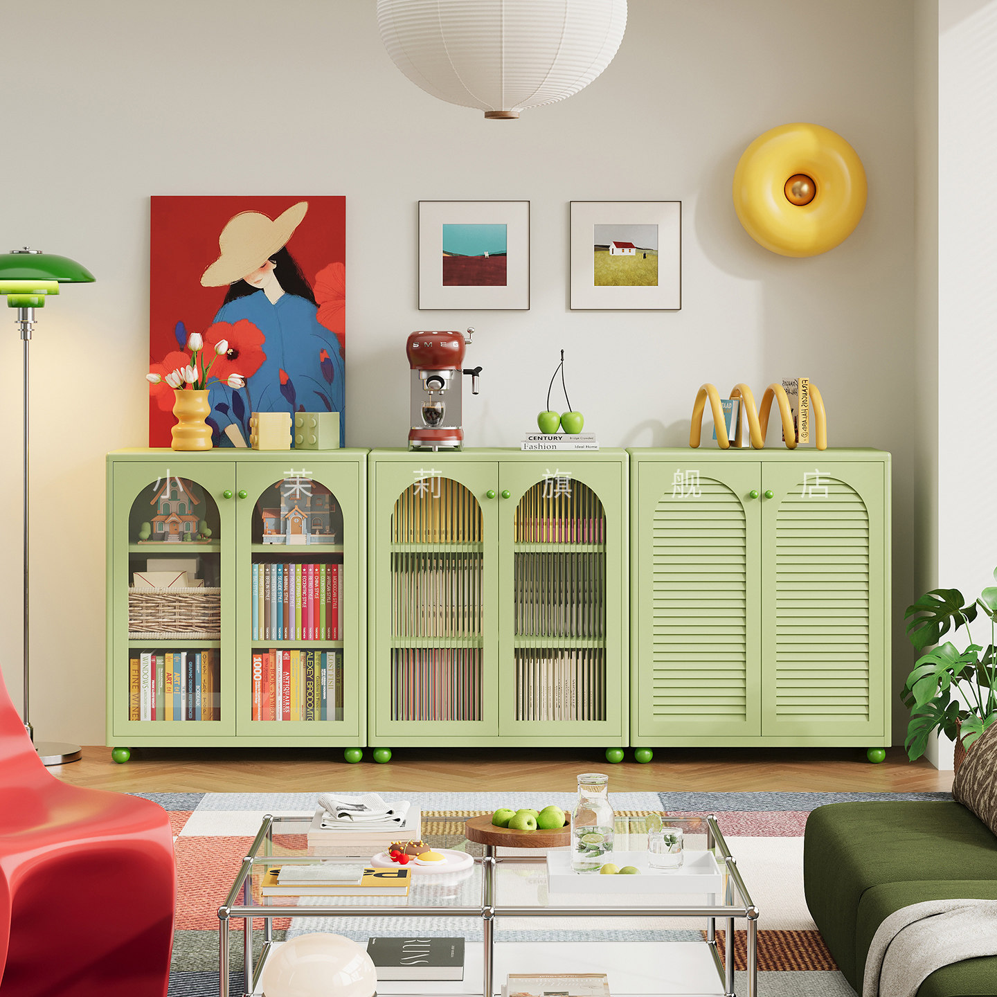 青年钢制书柜家居长虹玻璃带门一体成品小矮柜加厚铁艺书架展示柜