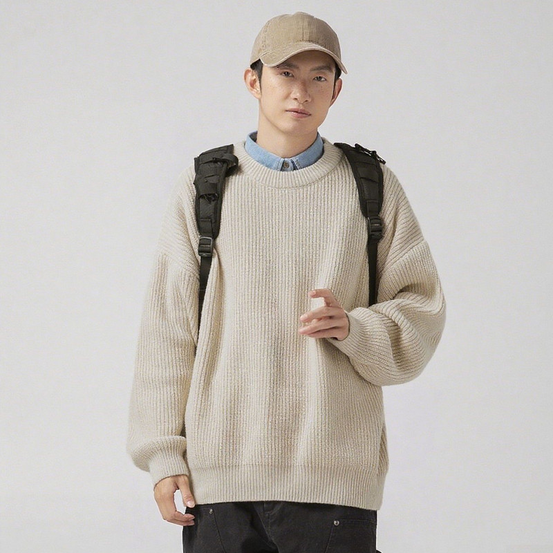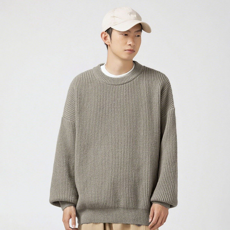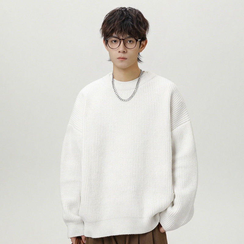 D4真维斯男装宽松休闲圆领毛衣 2025冬季新品港风纯色时尚针织衫