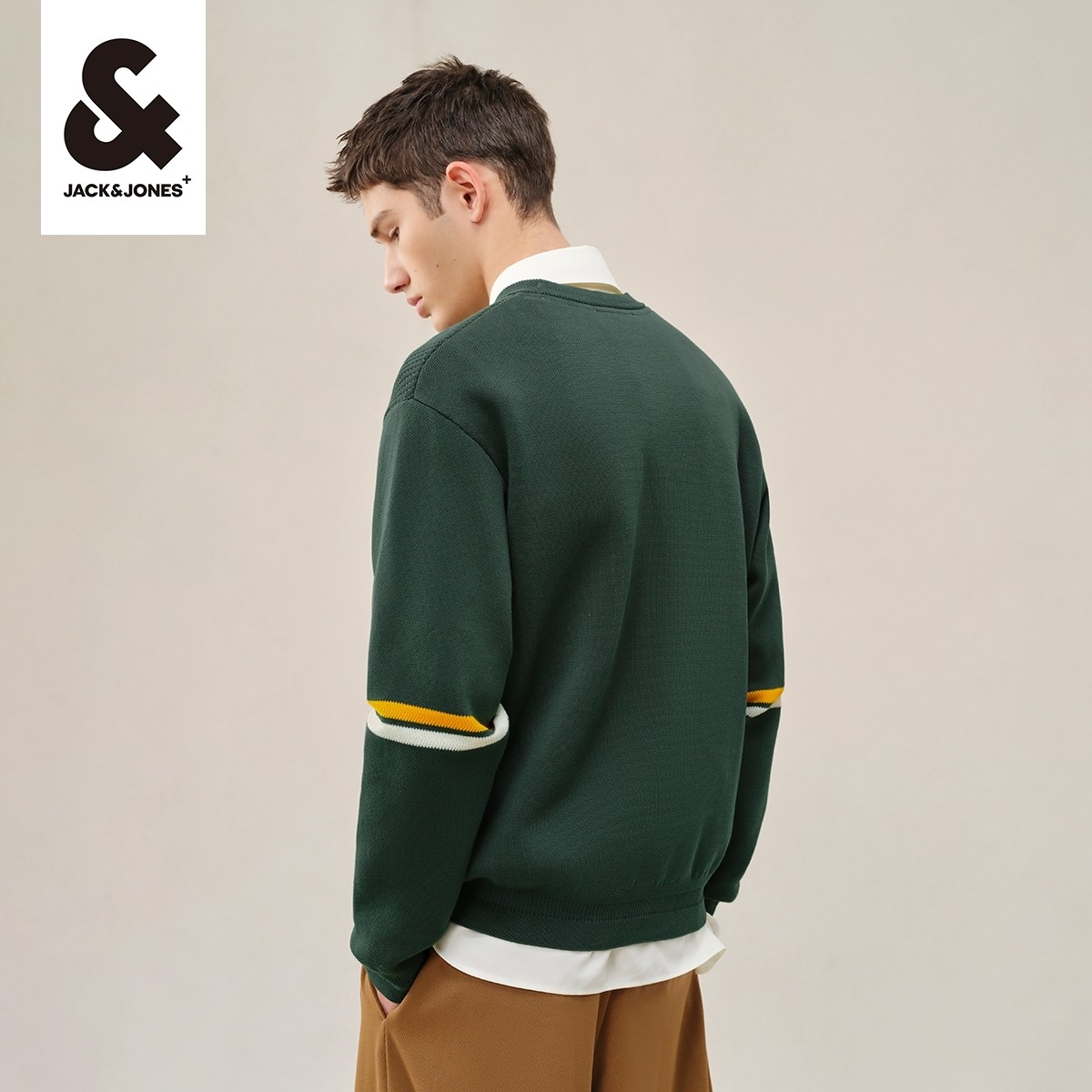杰克琼斯24秋冬新款NFL联名宽松圆领纯色织花纯棉针织衫毛衣男装
