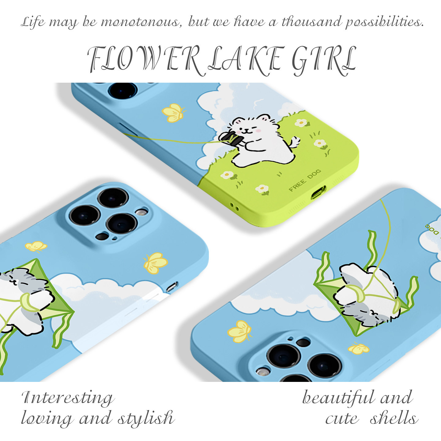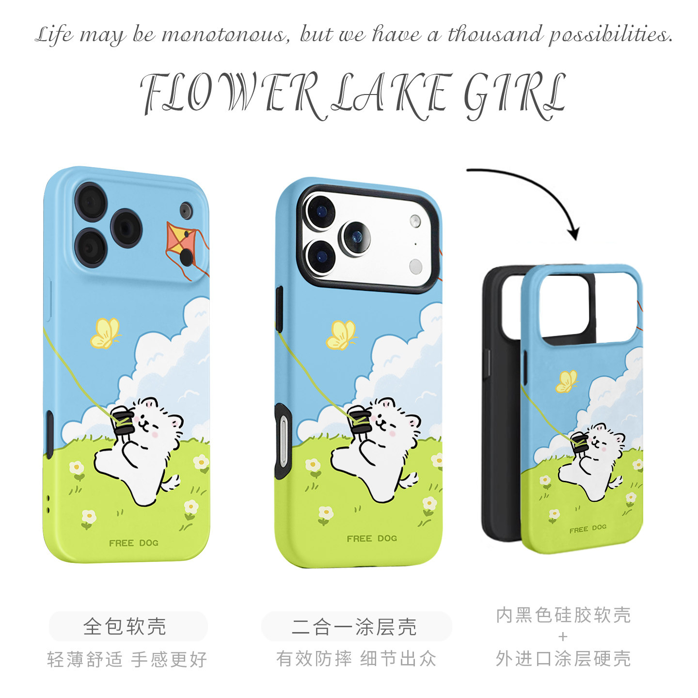 【自由】清新放风筝猫狗适用iPhone17/16promax手机壳华为Pura80情侣小米14vivoS30软iqooneo10苹果15荣耀500