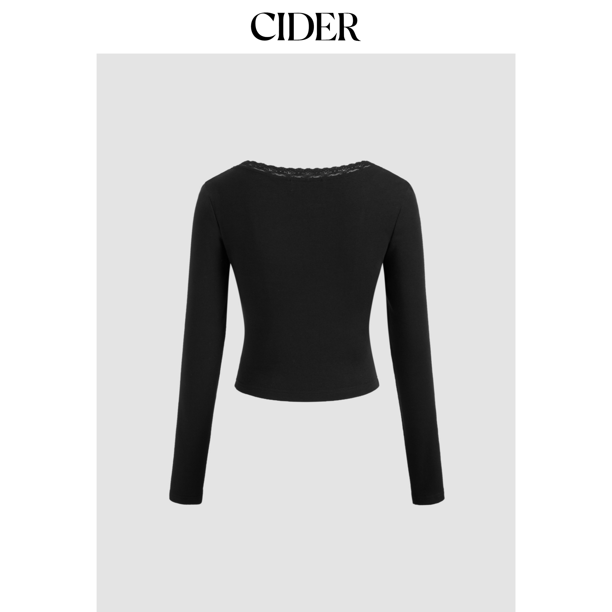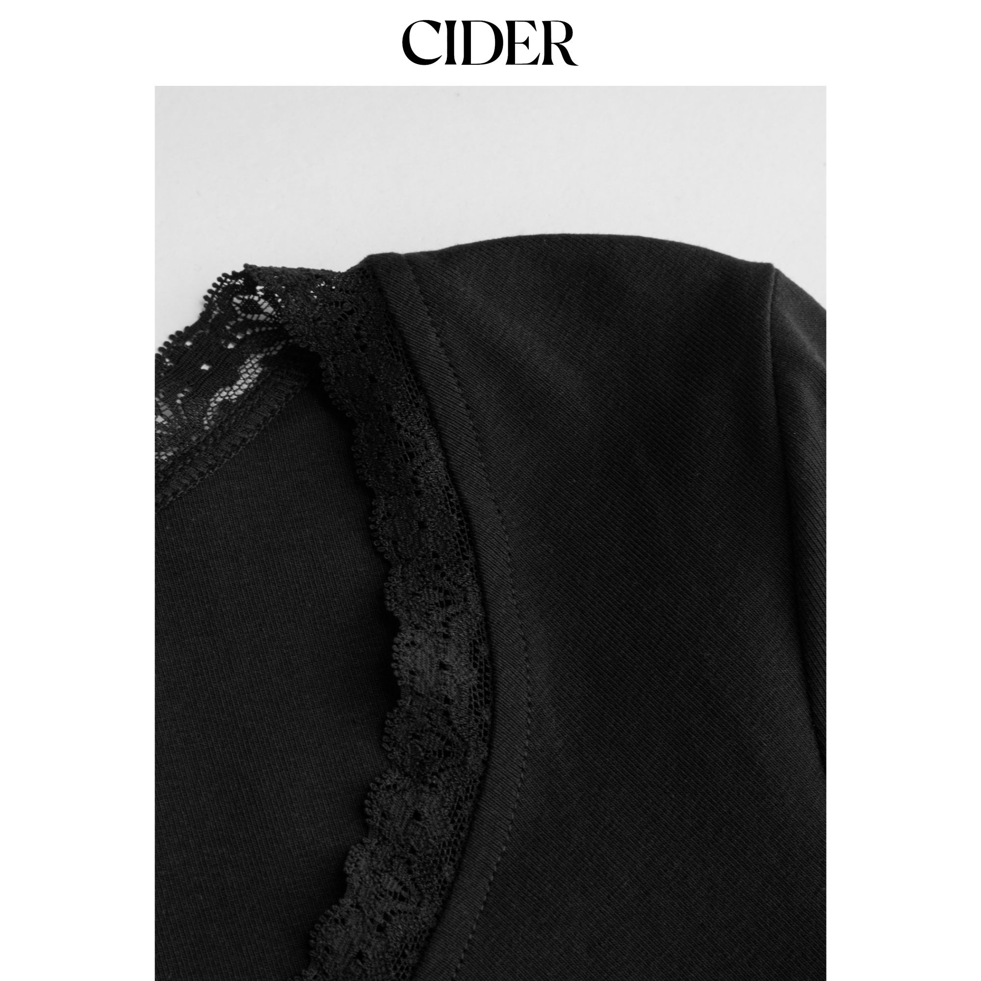 CIDER 春秋女装棉质色V领蕾丝镶边纽扣长袖上衣113397594