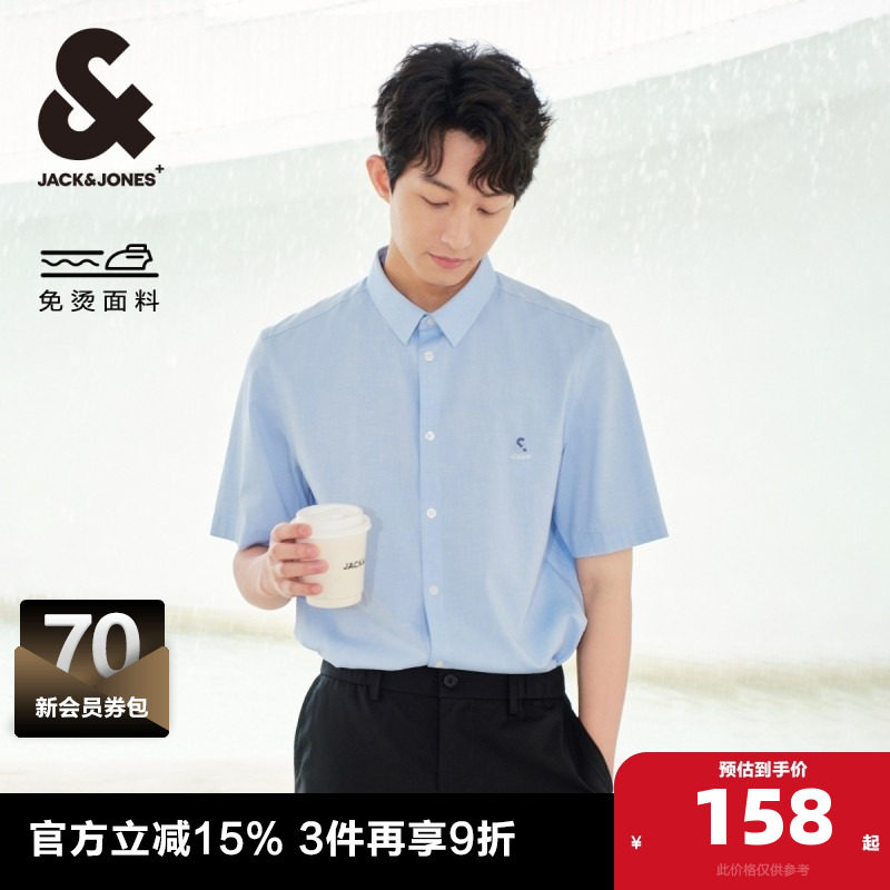 [零压衬衫]杰克琼斯2025年春免烫短袖衬衫纯色刺绣衬衣男装易打理