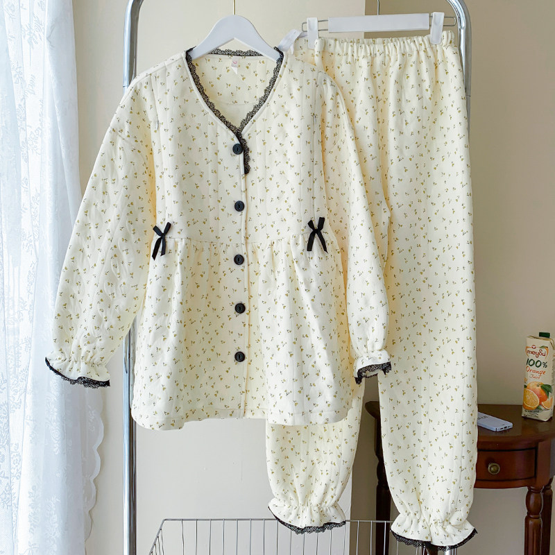 空气棉月子服秋冬季纯棉产后12月份全棉吸汗喂奶产妇哺乳孕妇睡衣