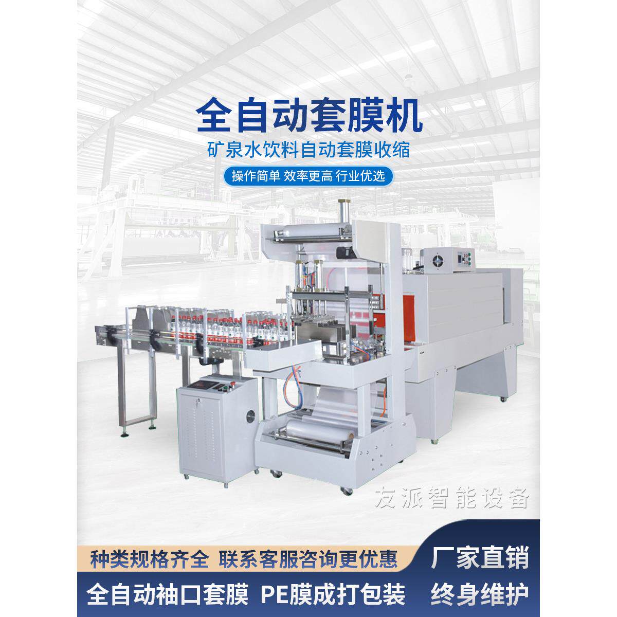 全自动套膜机矿泉水饮料理料成打袖口式输送套膜PE膜热收缩机