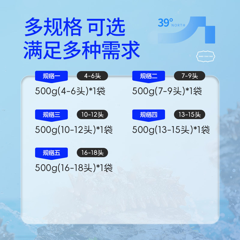 棒棰岛大连海参非即食辽参非干货单个冷冻海参一斤装500g