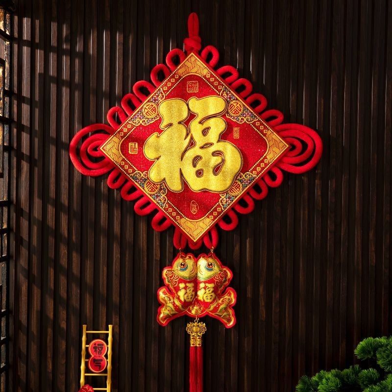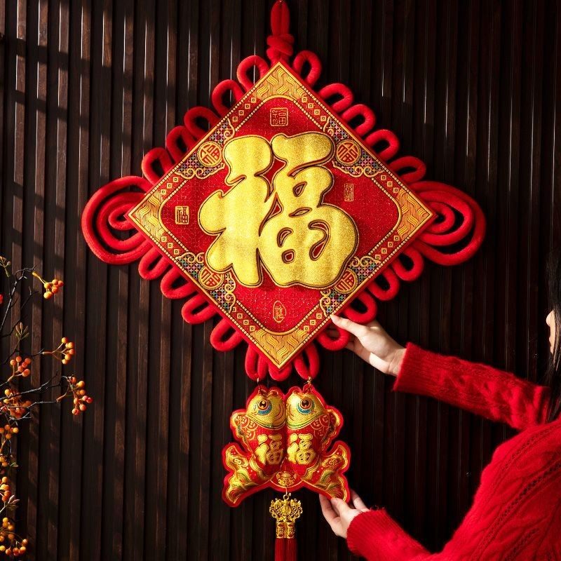 新款中国结挂件客厅大号福字电视背景墙玄关乔迁对联过年春节装饰