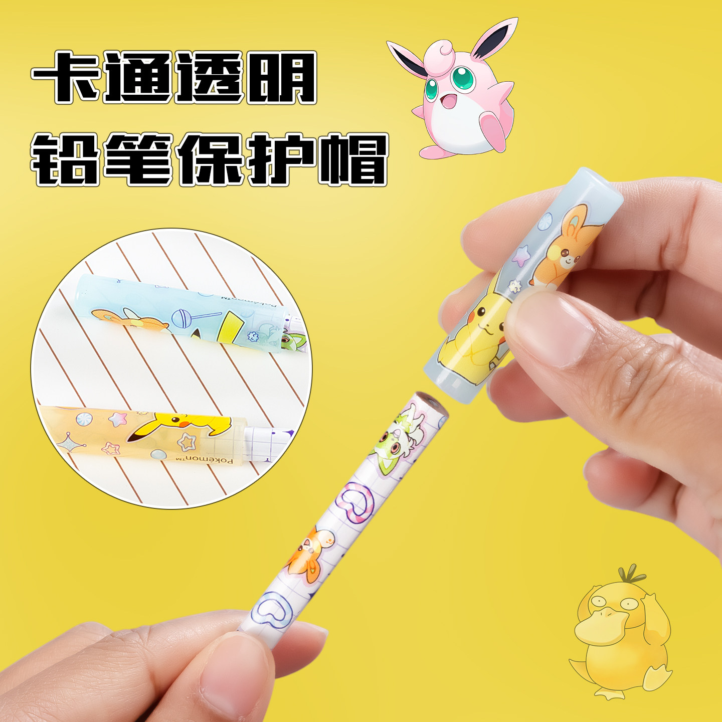 正版宝可梦皮卡丘联名铅笔套装小学生用一年级hb三角杆正姿铅笔不易断铅幼儿园初学者防滚落可削实木铅笔笔帽