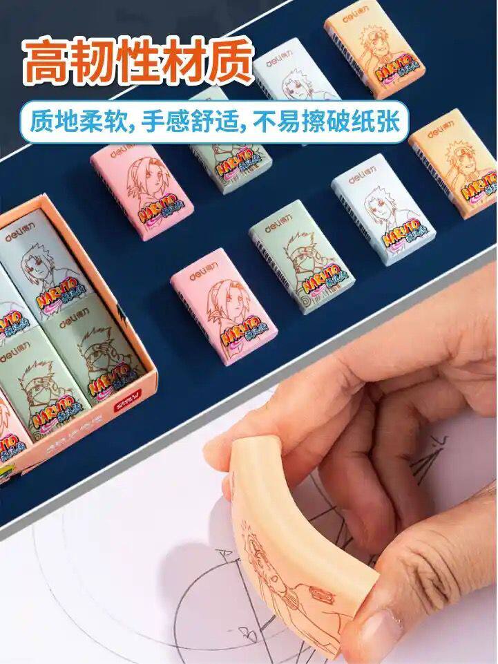 得力火影忍者橡皮擦小学生专用创意可爱卡通儿童美术幼儿园礼物消字象皮日本超萌像皮不易留痕少屑干净环保