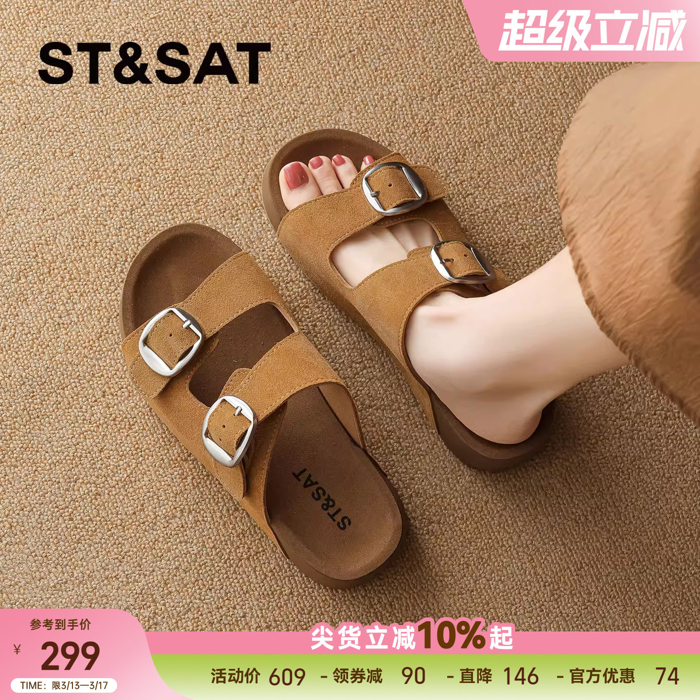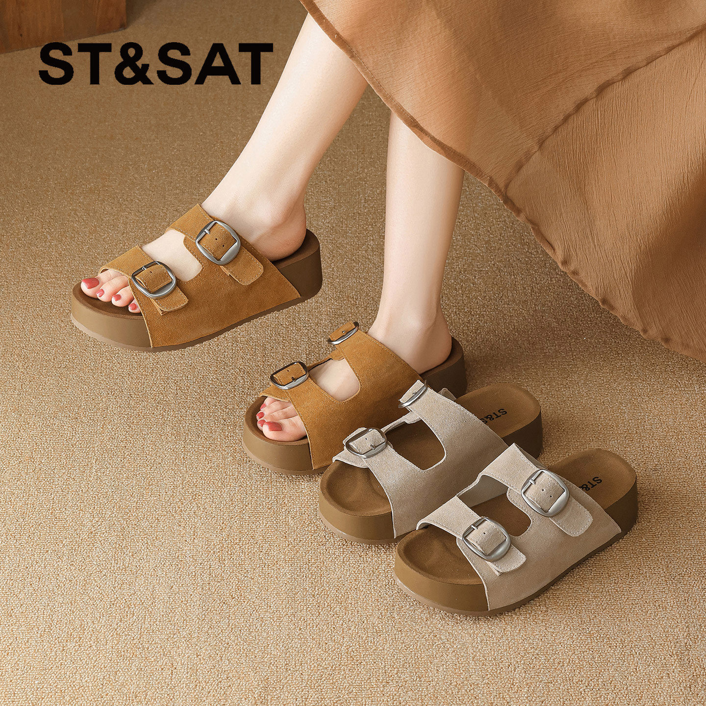 星期六复古风厚底勃肯拖鞋女2026夏季新款双扣带增高休闲凉鞋外穿