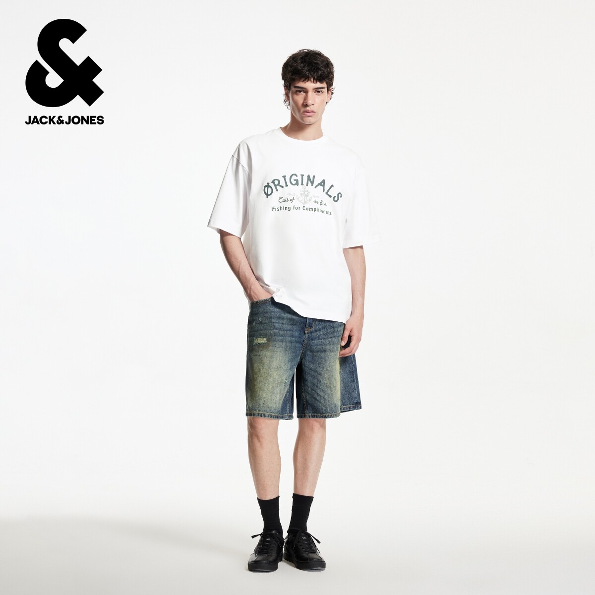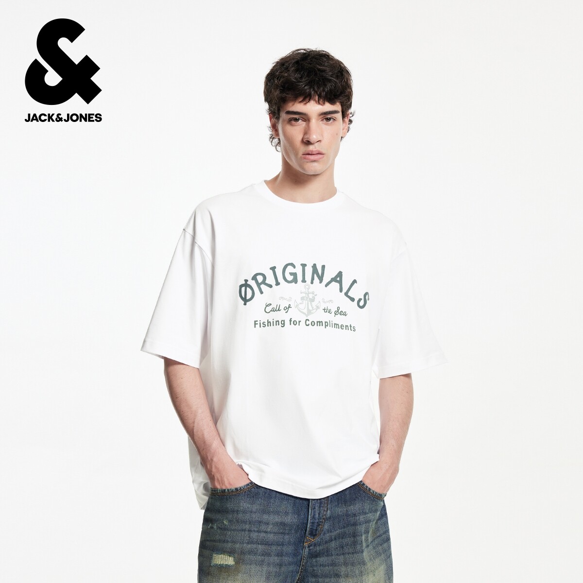 杰克琼斯男装夏季新款T恤日常休闲百搭舒适纯棉宽松圆领短袖上衣