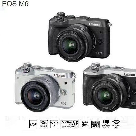 佳能EOS M6 M6一代mark2 微单反相机,入门级学生高清摄影数码旅游