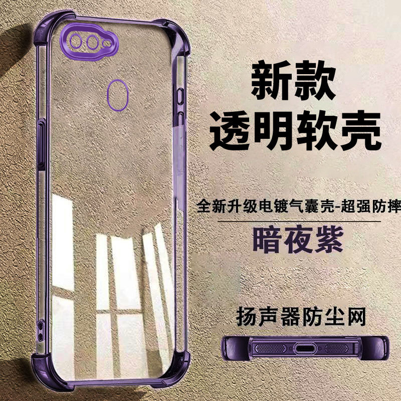 OPPOa7手机壳新款a12四角气囊硅胶防摔时尚镜头全包软壳适用OPPOa5s高级感奢华强抗氧化简约电镀透明款手机壳